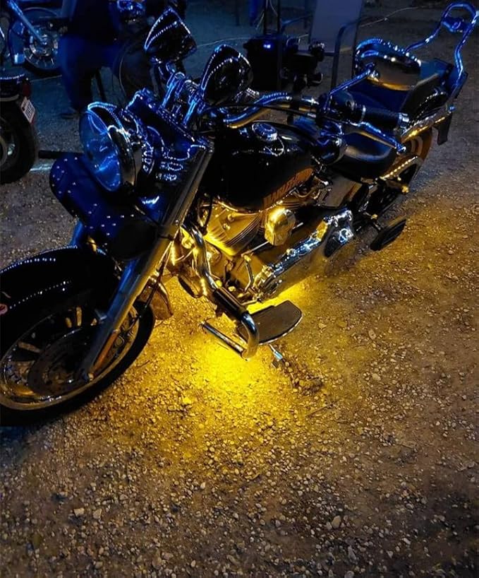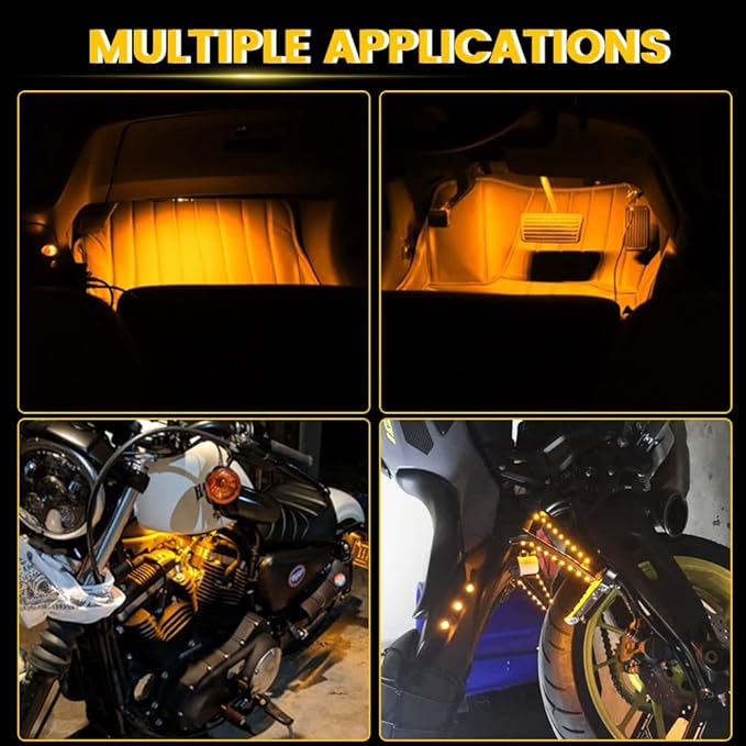 YM E-Bright Amber/Yellow Led Strip Lights for Cars 5050 SMD Waterproof Golf Cart Underglow Lights for Motorcycles Boat Scooter Bike Interior Exterior Decoration DC-12V,Pack of 4