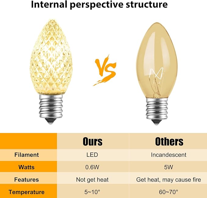 • Dimmable: Can be used for light strands. Led c7 replacement bulbs produce a festive atmosphere during the holidays, Christmas or all year round