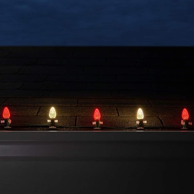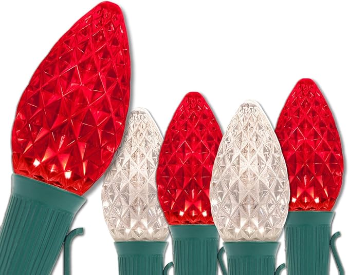 100 Red and Warm White C7 OptiCore Outdoor Christmas Lights Heavy Duty - Outside Christmas Lights LED; Green Wire (100 ft)