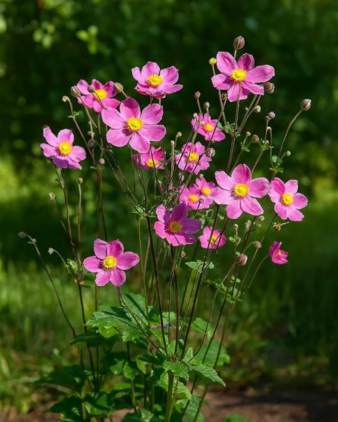 Perennial Farm Anemone x Hybrida 'Pamina' – Live Windflower in #1 Container, Semi-Double Deep Rose-Pink Blooms, Long Blooming, Deer Resistant, Perfect for Borders, Shade & Pollinator Gardens