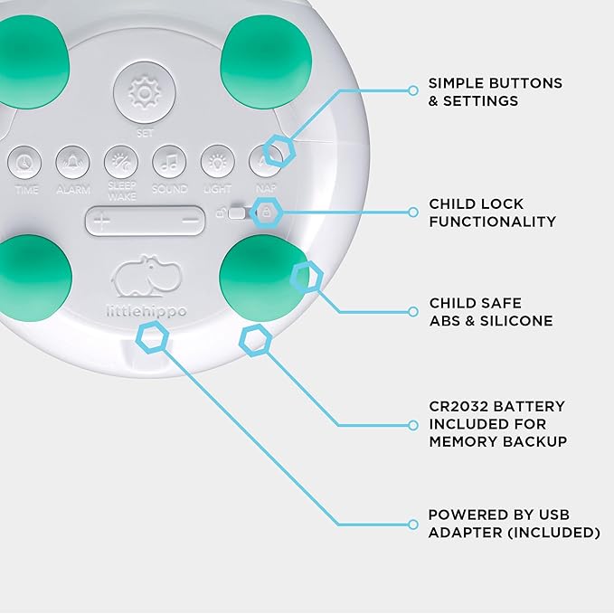 • BUILT TO LAST, DESIGNED FOR SAFETY - MELLA is crafted from child-safe ABS and silicone, ensuring durability and protection for your little one. It complies with FCC, CE, RoHS, CA65, REACH, and CPSIA standards for added peace of mind. We take pride in MELLA's quality and performance. Embrace bedtime joy and welcome brighter mornings with LittleHippo MELLA!