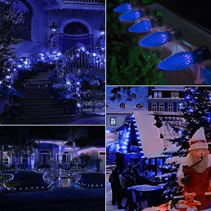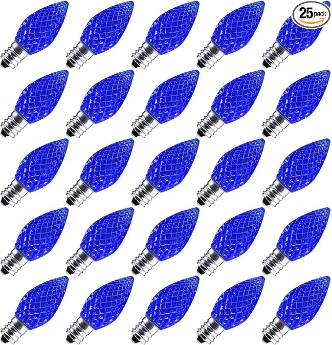 25 Pack C7 Led Replacement Christmas Light Bulb, C7 Shatterproof Led Bulbs for Christmas String Lights, E12 Candelabra Base, Commercial Grade Dimmable Holiday Bulbs, Blue