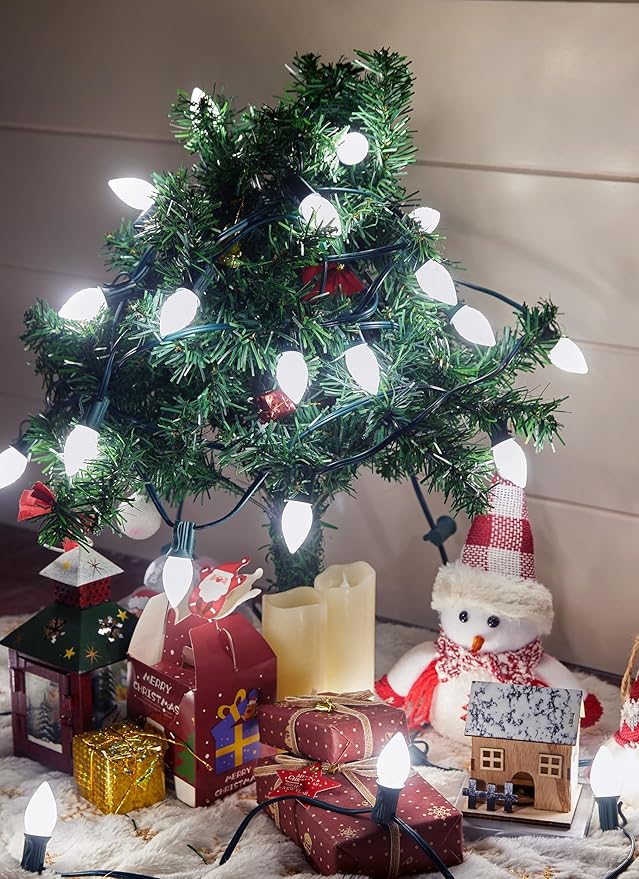 25 Pack C7 LED Replacement Christmas Light Bulbs for Light Strand and Christmas String Lights, Plastic Shatterproof Dimmable Holiday C7 Bulbs for E12 Base Sockets, Commercial Grade, Pure White