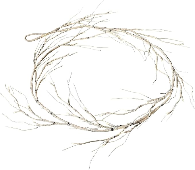 Hairui Birch Garland with Lights 6FT 48 LED Battery Operated, Lighted Twig Vine with Timer for Christmas Home Fireplace Decoration Indoor Outdoor Use