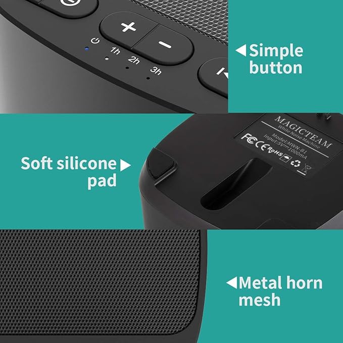 • ❤Function & Safety:Memory function automatically restores your previous volume, sound and time,it is powered by AC or USB.The machine is approved by FCC, CE and RoHS,don't need to worry about accidents.