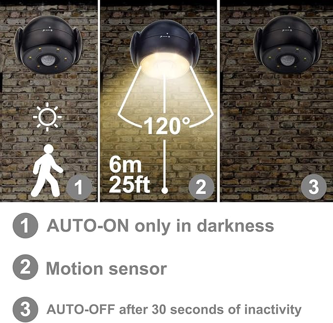 • [Night Sensor & Motion Activated Wall Light] - Auto-ON when motion is detected in full darkness, auto-off after 30 seconds if no more motion detected. Save energy and prolong battery life.