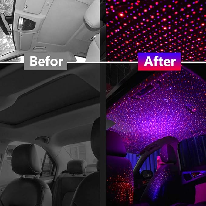 • Romantic Atmosphere: By rotating the head of our roof light, you can enjoy many projection styles and change the projection style. Creates a romantic atmosphere for your car roof or house