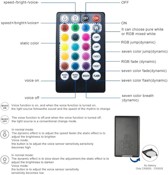 • 【Multi-color and Dynamic Mode】: DIY light effect what you like,with 28key remote controller, easy to choose all light change modes,including static colors ,jump, fade, flash and breath mode, adjust brightness and speed, even more than 16 million colors and multi-mode by APP/ Bluetooth control