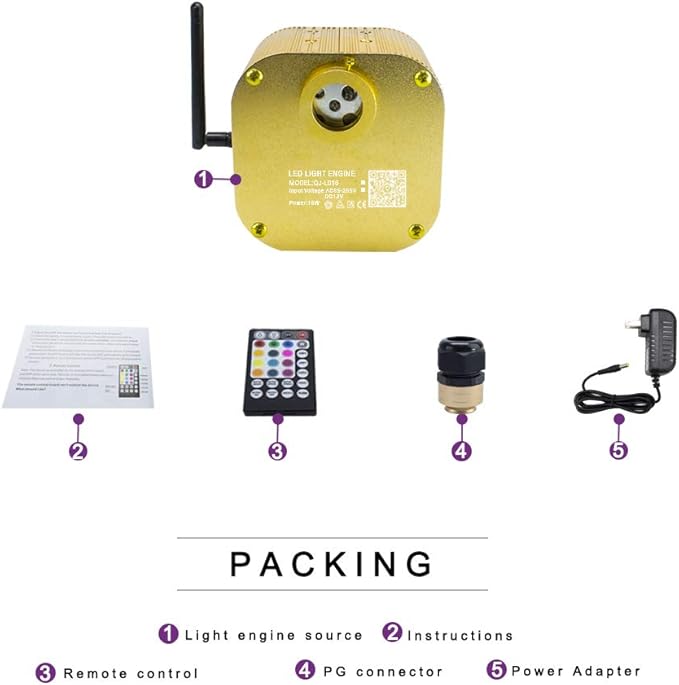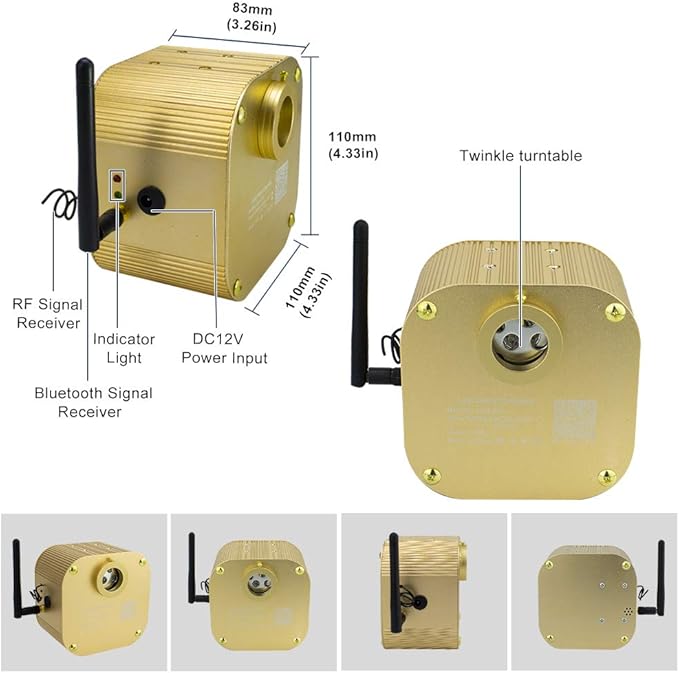 • 【Package】: Gold 16W twinkle light box+ wall-plug adapter cord+ remote+PG connector, Two year warranty guarantee to satisfy your need, perfect for car use home décor sky star ceiling light effect.