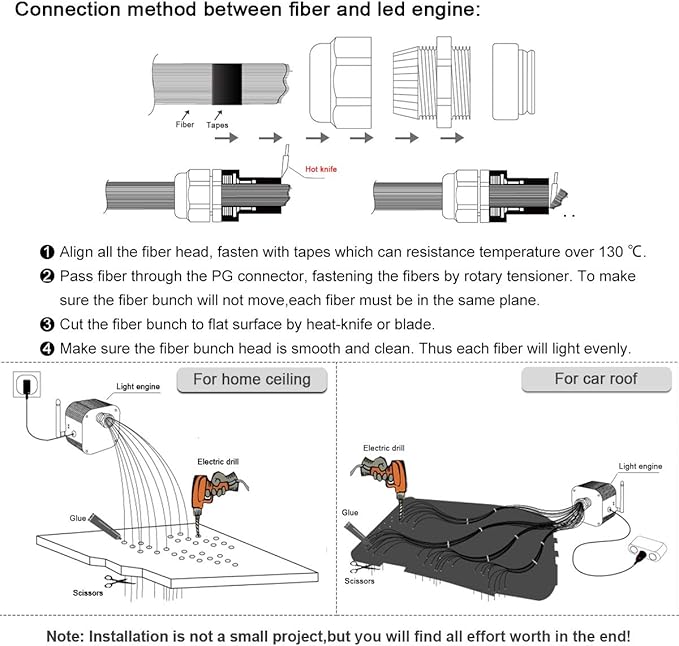 • 【2020 Upgraded Starlight Effect APP Control】: it is so much convenience to control light engine by supporting Android and iOS System “My SmartLED” APP device, the fiber optic light kits combine twinkle and sensor mode function, perfectly providing DIY shining and wonderful lighting effect, and offer 2-year guarantee to satisfy your need, we can customize other size of fiber as you request, plz contact us if you have any problem