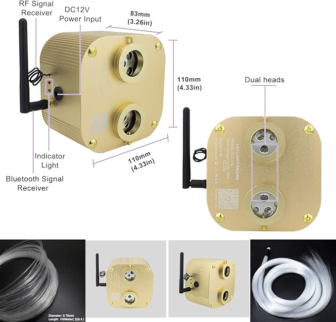 • 【Updated Dual-Head Light Engine】: Premium flexible transparent 0.03in,0.04in,0.06in diameter plastic PMMA end glow fiber optic cable, and superior design the 20W double-head light source with RGBW lamp beads to accommodate many fibers, have PURE WHITE (the most suitable light) and RGB mixed white