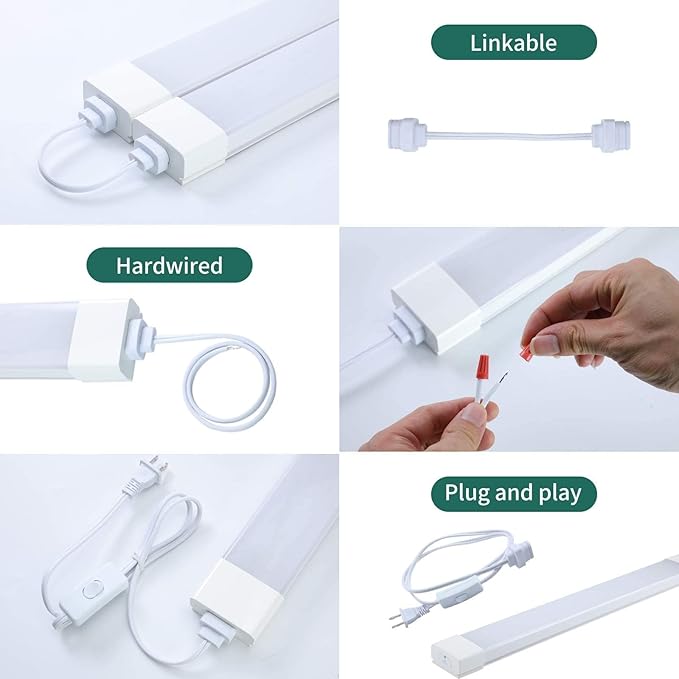 • 【WIDELY USED】Upgrade IP66 led shop lights with plug, definitely a good choice for indoors or outdoors. 180° wide beam angle and 160 pieces of lamp beads provide a wide illumination range. Ideal for both residential, commercial, and industrial lighting, such as bathroom, bedroom, kitchen, corridor, garage, office, shop, and supermarket.