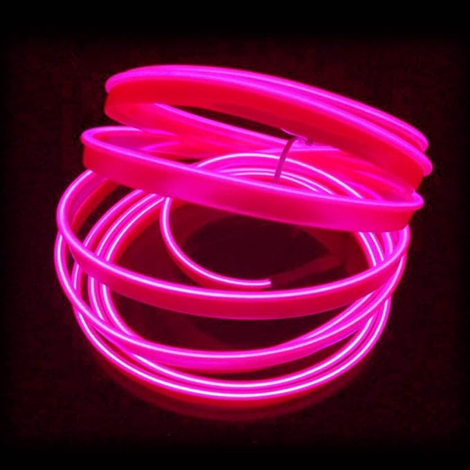 MaxLax Pink EL Wire Car Interior LED Kit - 16.4ft Flexible neon-Style Wire with 12V Fused Power Supply. Features 6mm Reinforced Edge for Easy auto Installation