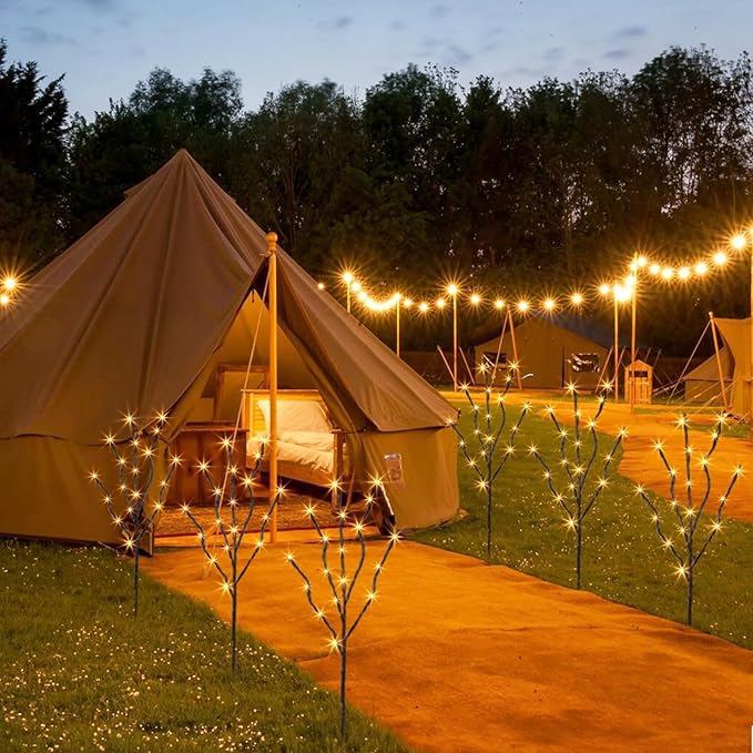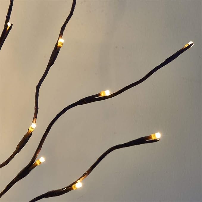 • TWIG LIGHTS: Including 6 PK branches, 6 ground stakes, and 1 UL plug, 120 LT warm white light illuminates together, making people feel warm