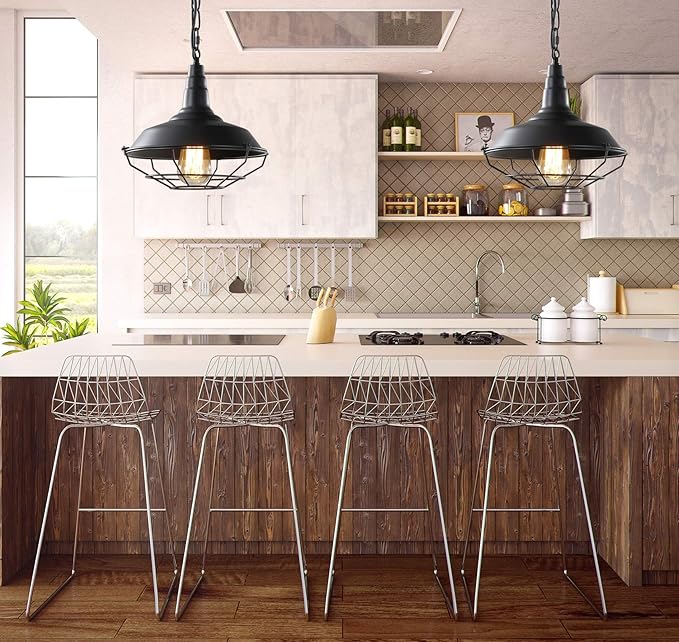 • WIDE APPLICATION - This black pendant light combines both farmhouse and industrial styles. It's a perfect decoration for a kitchen island, living room, dining room, garage, bar, hallway, porch, corridor, restaurant, or other space where needs rustic industrial taste to your room, offer you a good decorative effect.