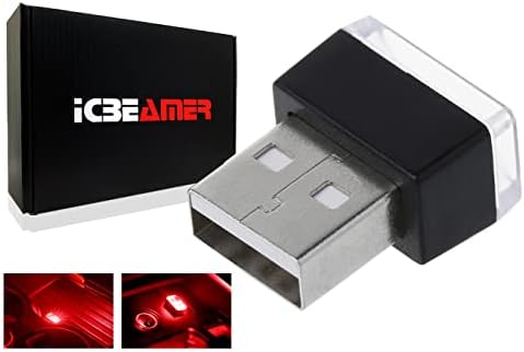 ICBEAMER 2-Pack USB Type-A LED Night Light, Color: Red | Plug-in Universal Fit Automotive Accessories for Car Interior and Trunk Ambient Atmosphere Lighting