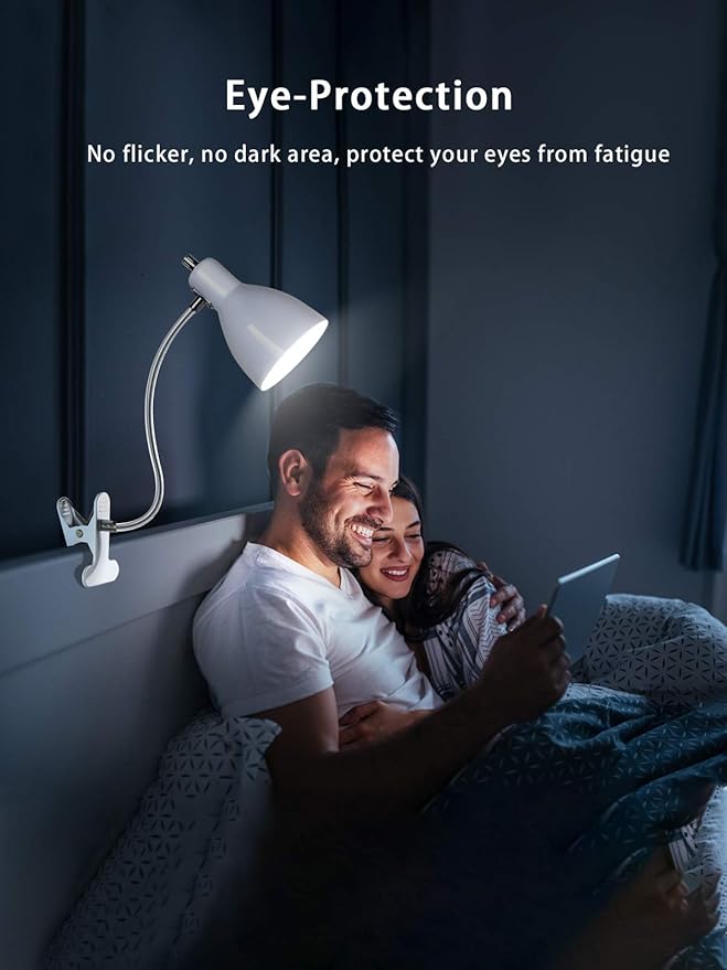 • 【EYE PROTECTION & ECO-FRIENDLY 】: Clamp Light Made of high quality, no flicker, no dazzle, no dark area help those who read and work hours a day to protect eyesight and reduce eye strain, ideal for reading, drawing, work, study. Best Gift for kids & bookworms. As an eco-friendly reading desk lamp, it consumes 80% less power than traditional incandescent lights so you can reduce your carbon footprint while also reducing your electricity bill.