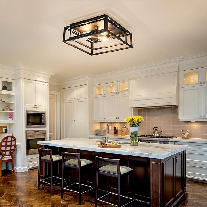 ZGLAOJT Black Flush Mount Ceiling Light Fixture,3-Light Industrial Metal Close to Ceiling Lights,Farmhouse Lighting for Hallway Bedroom Kitchen Dining Room
