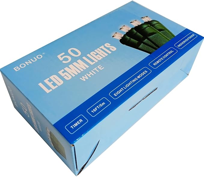 • Battery Lights length 16FT, 50 LEDs, powered by 3*AA battery, green wire, white light, our packaging without battery. The lighting time depends on your battery capacity and quality.