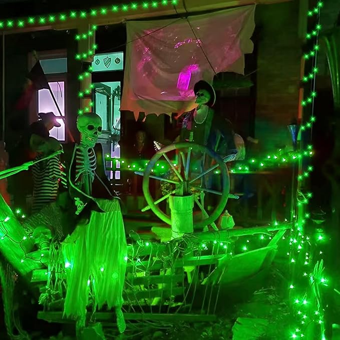 YEGUO 66ft 200 LED Green Halloween Lights Outdoor Waterproof, Green Wire Christmas String Lights Indoor, 8 Modes Twinkle Tree Lights Plug in with Timer Memory