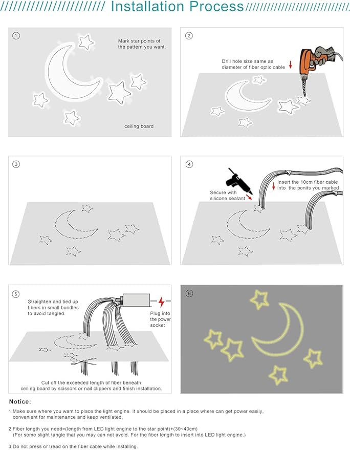 • 【Widely Application】:Our led optic fiber lights is widely used in KTVs, Sauna, Sitting Room, Living Room, Bedroom, Kitchen, Dining Room, Home, Pools. Perfect for make curtain, screen, ceiling sky decoration, Christmas, birthday party, etc