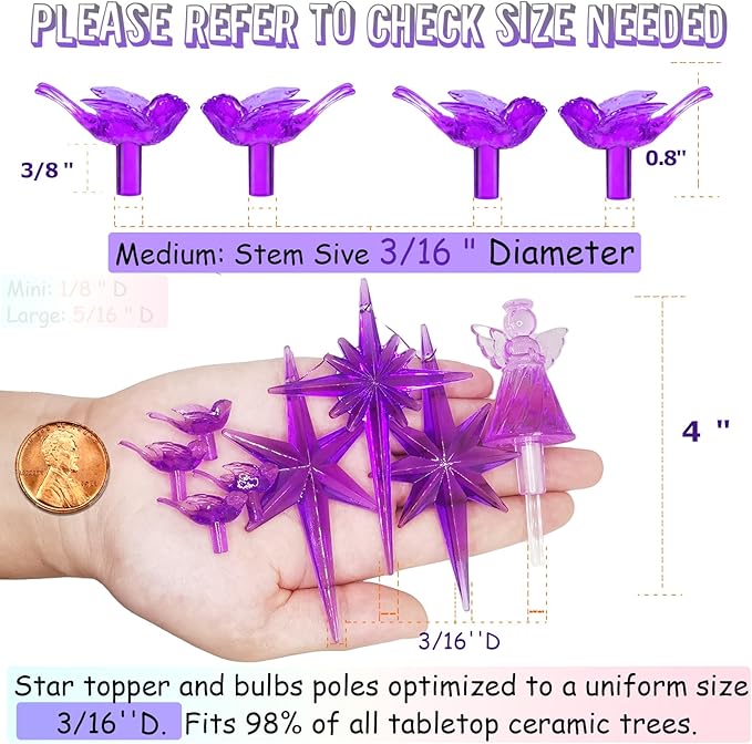 117Pcs Ceramic Christmas Tree Purple Martin Bird Replacement Lights Bulbs and 1 Angel/3Stars Topper Ornament for Ceramic Tree Décor - Medium Plastic Pegs.