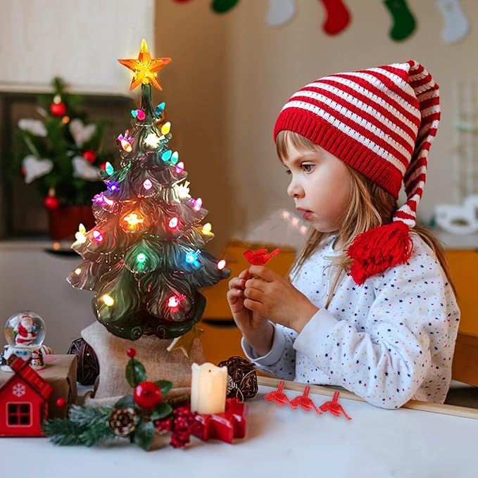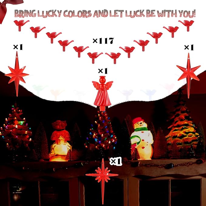117Pcs Ceramic Christmas Tree Red Cardinal Bird Replacement Lights Bulbs and 1 Angel/3Stars Topper Ornament for Ceramic Tree Décor - Medium Plastic Pegs.