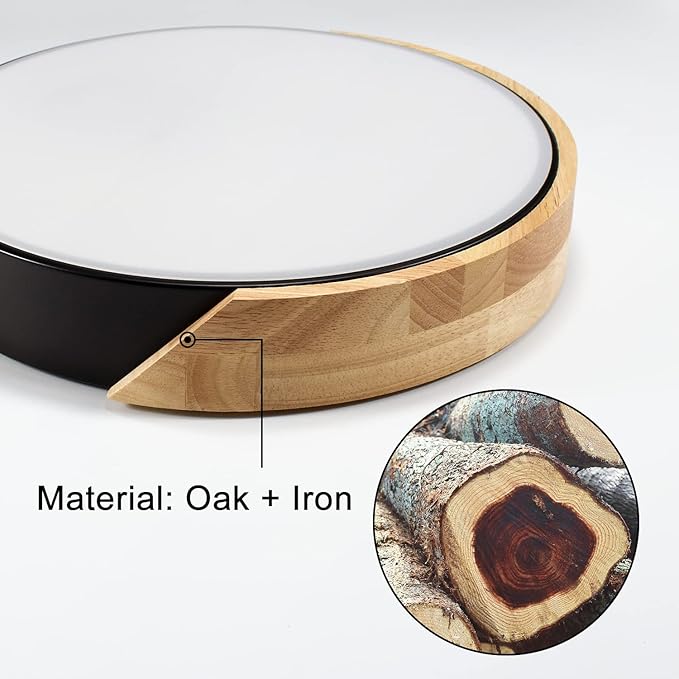 • 【High Quality Material】The flush mount light is made of oak, metal and acrylic. The oak has a smooth surface and the acrylic shade transmits light well with a soft, even light that protects the eyes from glare.