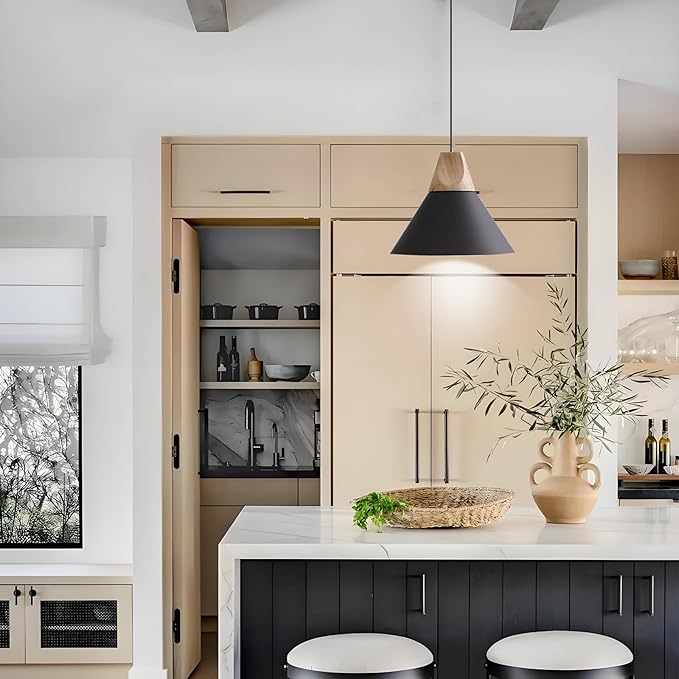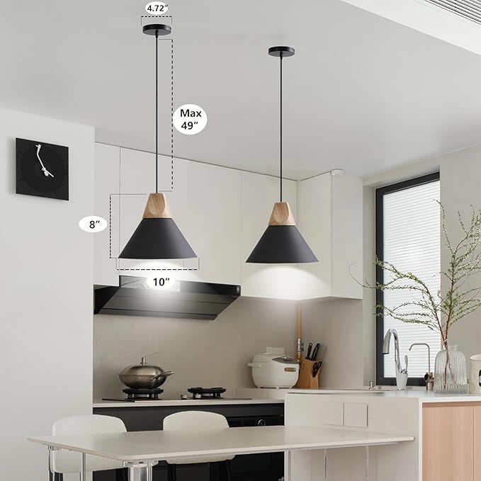 • 【Minimalist Design】The Modern Pendant Light Fixture is Composed Of Solid Wood And Metal Lampshade On The Top, Simple And Modern, And Will Beautifully Illuminate Modern Or Retro Decoration. It Is The Perfect Pendant Lighting For Any Modern Home, Kitchen, Office, Or Commercial Space.