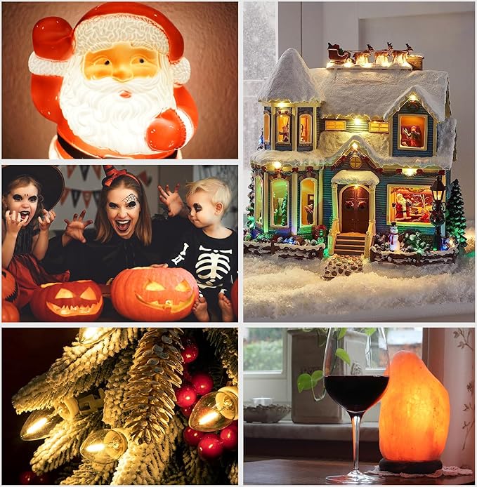 • 【2 Pack Accessory Cord with 2 C7 Bulbs】Our C7 accessory cord with LED lights will be perfect for lighting a group of ceramic houses for a holiday display. Comes with 2 lights. Cord is available in white color.