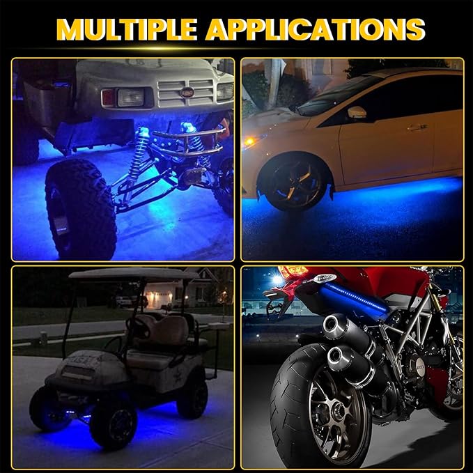 YM E-Bright Upgrade Blue Golf Cart Lights Car Underglow Led Strip Lights for Marine Boat Deck Motorcycles Kayak Interior Exterior 5050 Chipset 15SMD Waterproof IP67 DC 12V(Pack of 4)