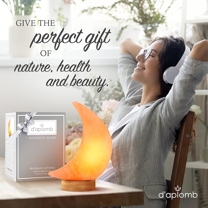 d'aplomb 100% Authentic Natural Himalayan Salt Lamp;Hand Carved Moon Pink Crystal Rock Salt from Himalayan Mountains; Dimmer Cord; 5 lbs