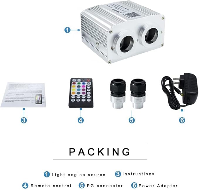 • 【Two Port 16W Twinkle Starlight Engine】:The dual-head 16W light engine with RGBW lamp beads, have PURE WHITE (the most suitable light) and RGB mixed white, holding maximum 558pcs 0.03in fibers per 20mm port
