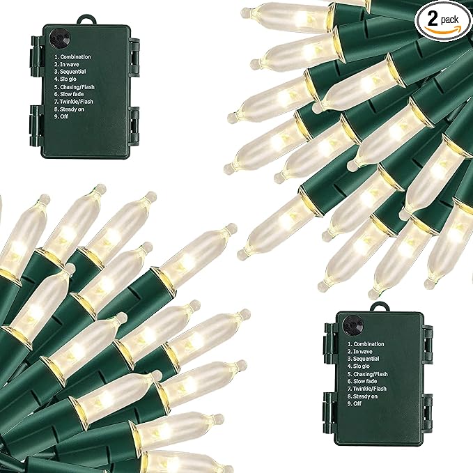 • 8 Modes Settings: Press the button on battery box to select 8 lighting modes: combination, in waves, sequential, slogs, chasing/flash, slow fade, twinkle/flash, and steady on. Press the button on the battery box to select the lighting mode you like. Fantastic lighting effects of this Christmas lights, adapting to desired occasions or events.