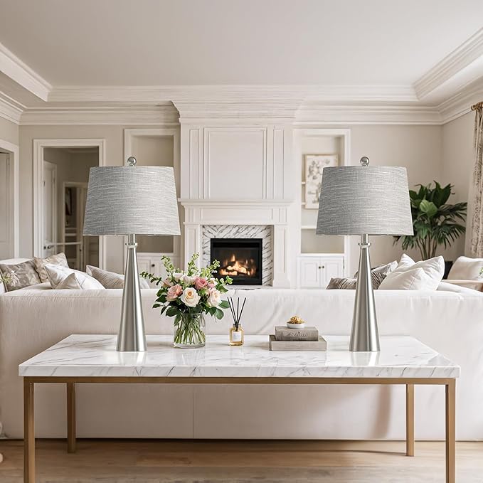 Oneach 25.75" Table Lamps Set of 2 for Living Room Bedroom, Bedside Lamp 3-Way Dimmable Touch Control, Modern Silver Nightstand Light Fabric Shade Vintage Accent Style