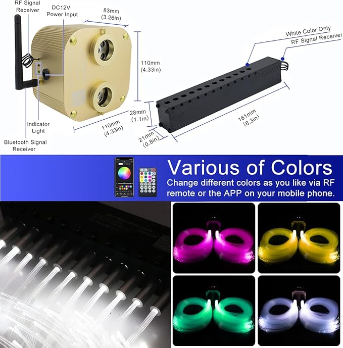 • 【Upgraded Starlight Effect APP Control】: It is so much convenience to control light engine by supporting Android and iOS System “My SmartLED” APP device, the fiber optic light kits combine twinkle, music sync and shooting star function, perfectly providing DIY shining and wonderful lighting effect, and offer 2-year guarantee to satisfy your need, we can customize other size of fiber as you request, plz contact us if you have any problem