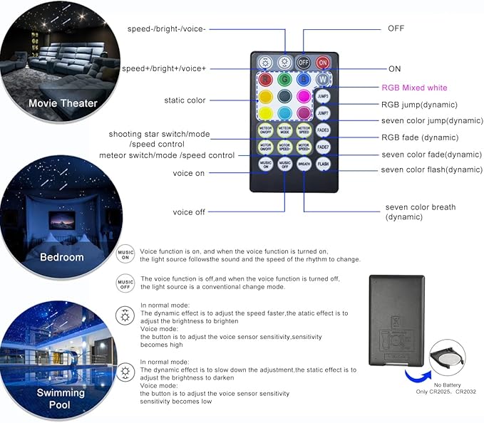 • 【Twinkle& Sound Activated& Shooting Star Effect】: the fiber optic strands twinkles would like dancing with rhythm in the music mode, enjoying the beautiful flashing light,vivid shooting star and favorite music at the same time.