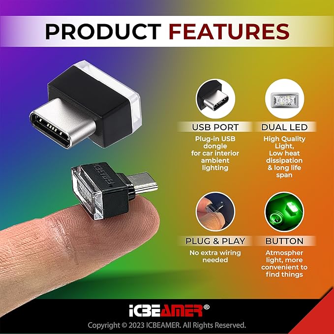 • ⭐ Plug-and-Play Convenience – No wiring or setup needed. Just plug into any USB-C port in your car, SUV, or truck and enjoy subtle interior illumination.