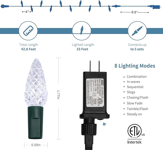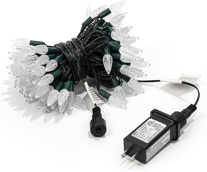 • [Christmas Decorative C6 String Lights]: With 100 cool white individual faceted strawberry C6 LED bulbs. Each Christmas light has end-to-end connection, you can connect up to 5 sets together to illuminate a wider range
