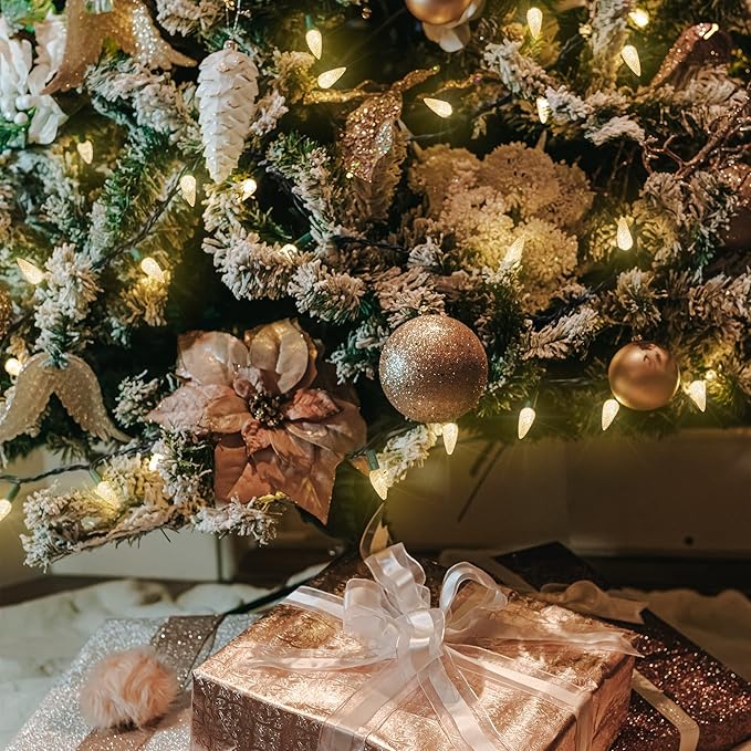• [Christmas Decorative C6 String Lights]: With 100 warm white individual faceted strawberry C6 LED bulbs. Each Christmas light has end-to-end connection, you can connect up to 5 sets together to illuminate a wider range