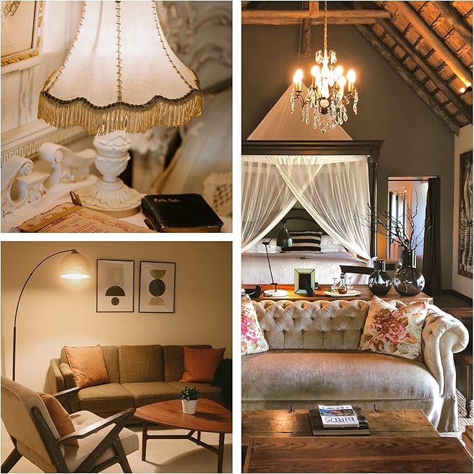 • 【Versatile Application】These bulbs fit a variety of fixtures including chandeliers, pendant lights, wall sconces, sputnik lights, bathroom vanity lights, ceiling fans, table lamps, hallway, porch and sconce lights. Brighten up your period cottage space with style