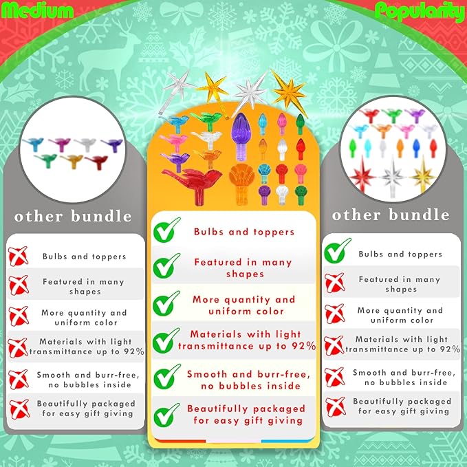 • 【MATERIAL LIGHT TRANSMITTANCE UP TO 92%】Crystal Clear Ceramic Christmas Tree Bulb Removal Replacement Kit is perfect for replacing lost top stars in your precious ceramic tree and tree bulbs taken away by kittens.
