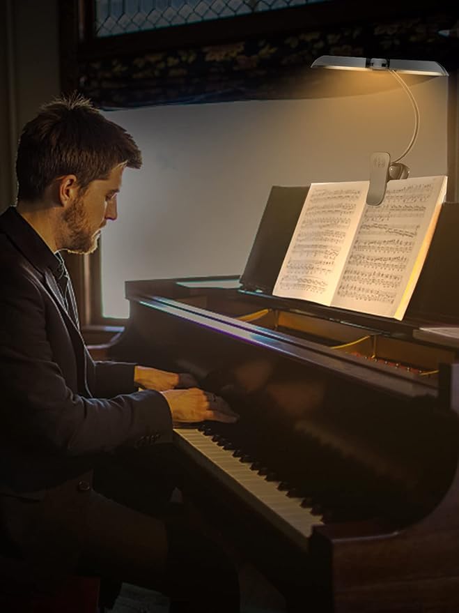 • Professional Broadbeam With Anti-Glare Shield - 42 beads of LED has a wider illumination area & more uniform lighting effect, Features Anti-Glare Shield Design: A discrete back fin directs bright light away from the audience and back to the sheet music. Let our piano lamp quietly & nicely shine your music sheet and the audience focus enjoying your music without being bothered by bright light. Great for rehearsals, concerts, art.