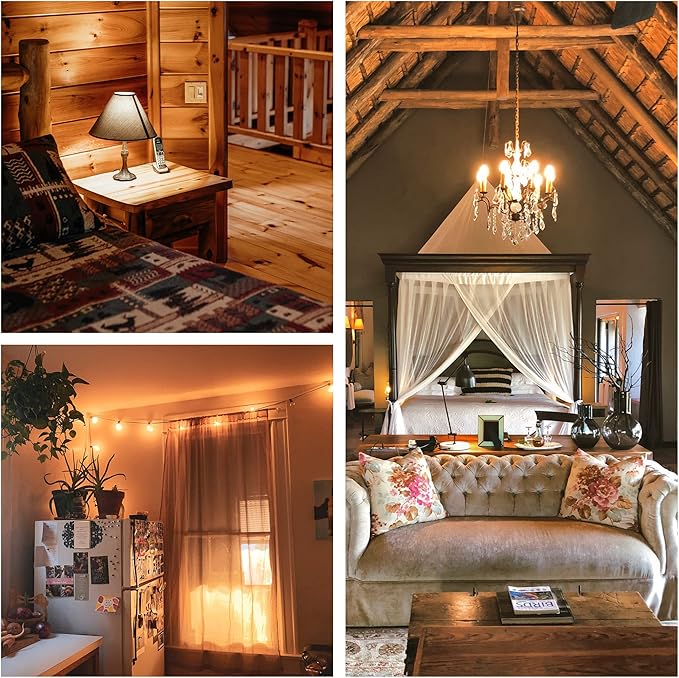 • 💡【Excellent Performance】Our C32 LED bulb offers soft exceptional brightness and color accuracy, ensuring that you get the best possible lighting experience. Experience high-quality lighting with a Color Rendering Index (CRI) of 90+. Enjoy vibrant, true colors without the unwanted heat that often comes with incandescent bulbs.