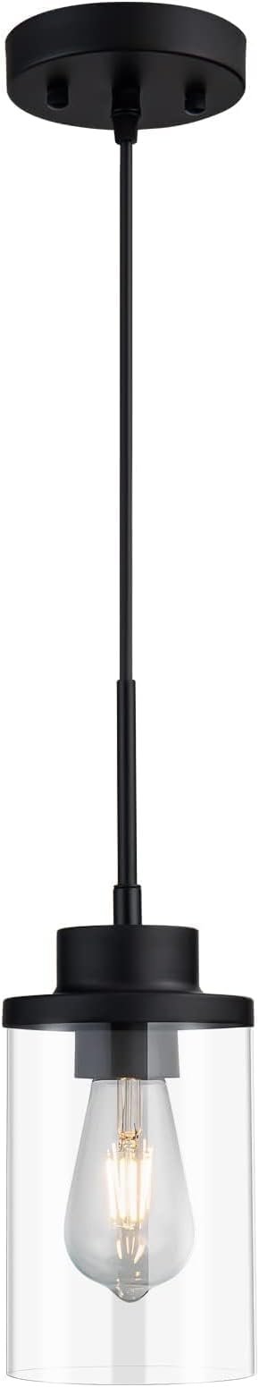 Modern Black Farmhouse Clear Glass Cylinder Pendant Light Fixture,Ceiling Hanging Metal Industrial Mini Pendant Lighting for Kitchen Island Dining Table Bedroom Hallway Foyer…