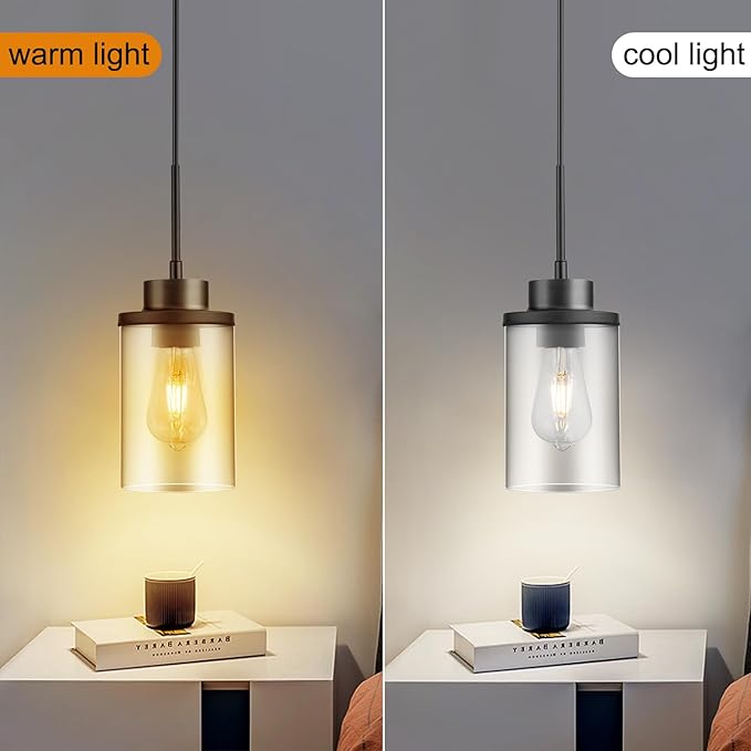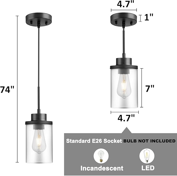 • 【PERFECT INSTALLATION SIZE】: The glass shade size is 4.7'' D x 7'' H, and the canopy size is 4.7'' D x 1'' H. The farmhouse pendant light is with a matte black finish. All mounting hardware and installation guide are included in the pendant ceiling light package for quick installation, just need to connect the wire and assemble the shade only, saving costs for hiring an electrician