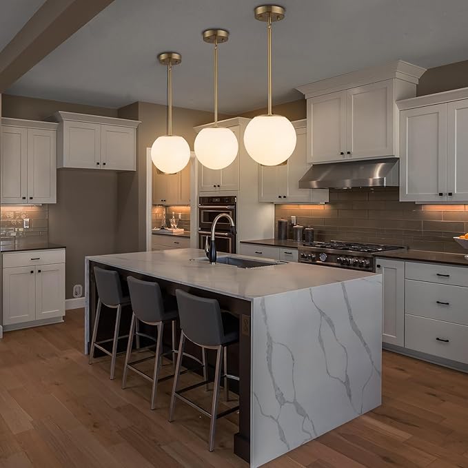 • Modern Design: Our 1 light globe pendant light with opal glass works well in many different styles of decor, from modern to vintage. The adjustable gold pendant light can be installed on sloped ceilings and with adjustable cord that allows you to customize the fixture to your lighting needs and desired look