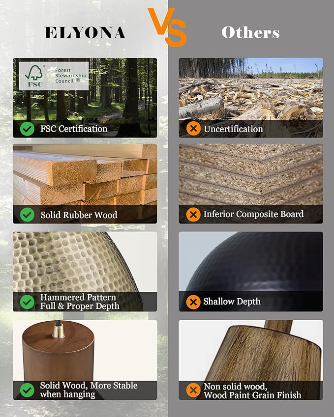 • 👍【FSC Certified Solid Wood】In an era saturated with plastic products, we choose to return to nature and embrace a sustainable lifestyle. Each lamp is a gift from nature crafted from FSC certified solid wood, ensuring that the wood comes from sustainably managed forests. This allows you to enjoy life while also contributing to the future of our planet.Unlike plastic natural solid wood offers an unique grain patterns. Each lamp is like a piece of natural art, telling you stories of life and time.
