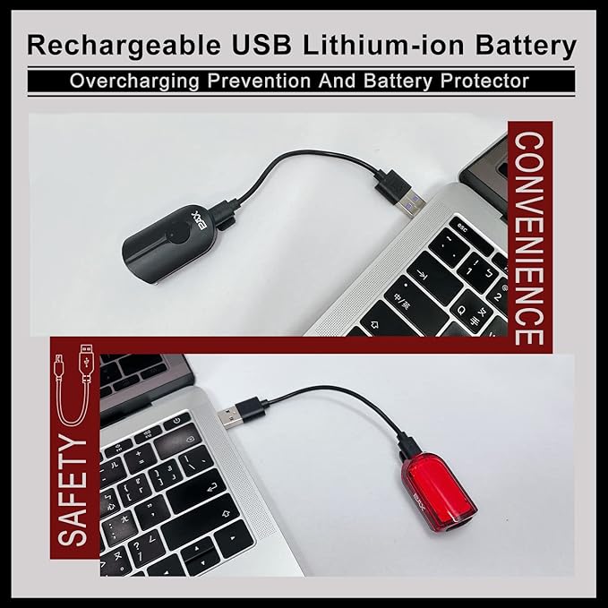 • 【Compact and Exquisite】Easy to carry. Front Light Specification: 50 × 28 × 21.6 mm, 19 gram / Rear Light Size: 49.5 × 26.5 × 20 mm 18 gram.