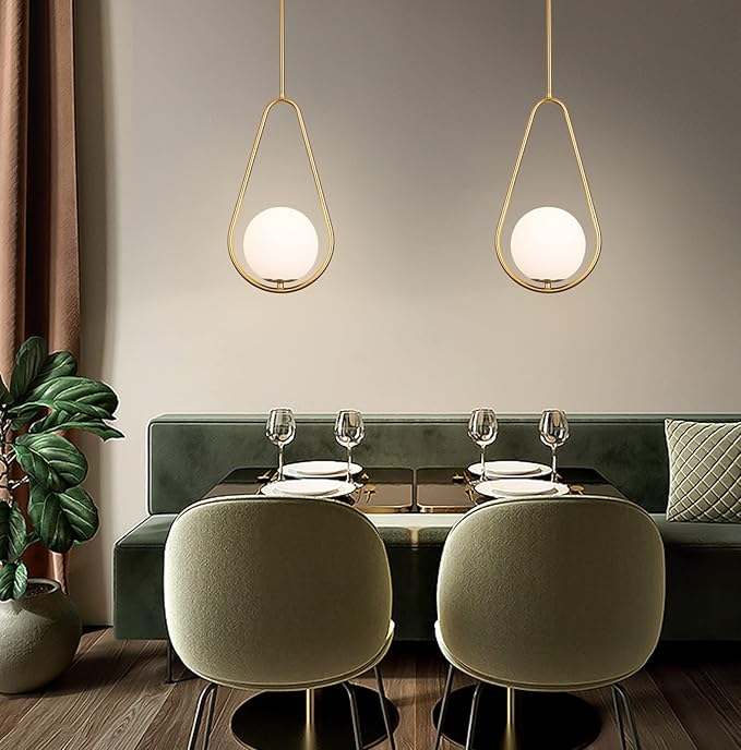 • {High Quality Material}: this pendant light fixture made of sturdy metal and premium brass finished ,smoothly surface . come with a milky opal globe ,make the light more uniform and softly . good option for home decorating.